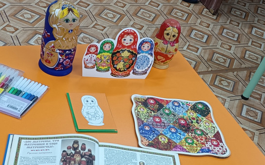 Матрёшка - настоящая русская красавица. Румяная, в нарядном сарафане, на голове яркий платочек. А самое главное, что эта куколка - с секретом! Внутри её прячутся весёлые сестрички, мал - мала меньше. Сегодня для детей детского сада специалист библиотеки провела познавательное мероприятие, на котором познакомила ребят с матрёшкой. Так же в ходе мероприятия была предложена игра - пазл " Матрёшки" и раскраска этой расписной игрушки.